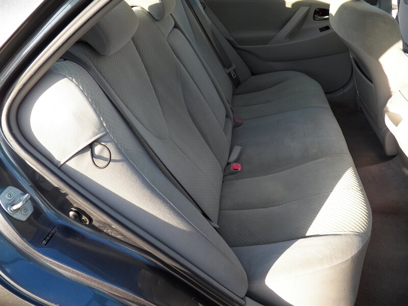 2007 Toyota Camry LE with a 2.4L I4 (158 hp, 161 lb-ft) paired to a 5-speed automatic, front-wheel drive; EPA-rated 21 MPG city / 30 MPG highway. Vehicle is in excellent overall condition. Factory equipment includes air conditioning, power windows and door locks with remote keyless entry, cruise control, tilt steering, cloth seating for five with adjustable driver’s seat and a 60/40 split-folding rear seat, AM/FM/CD audio, steel wheels with covers, intermittent wipers and rear window defogger, and a comprehensive airbag system including front and side curtain airbags.