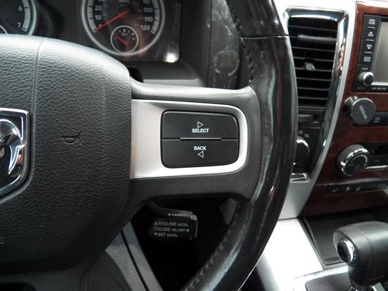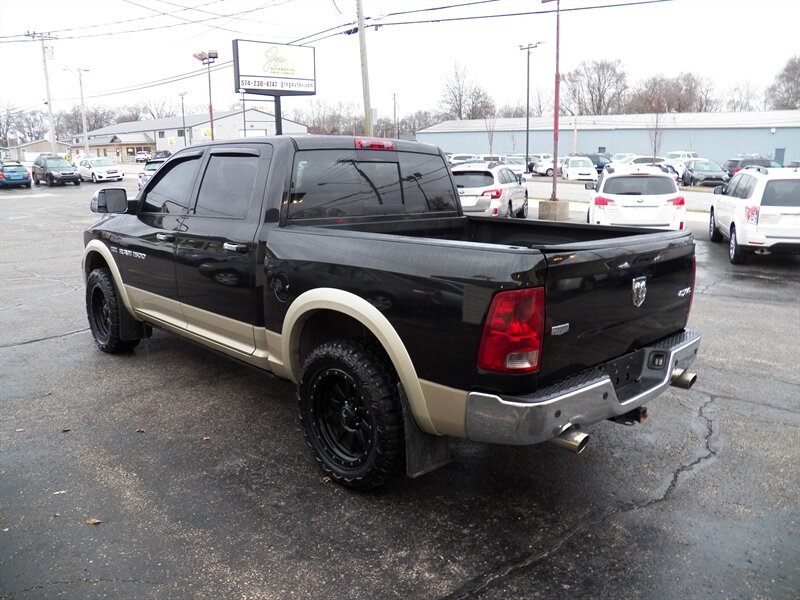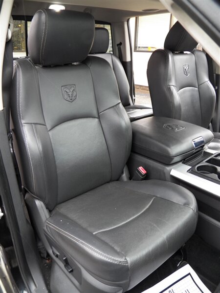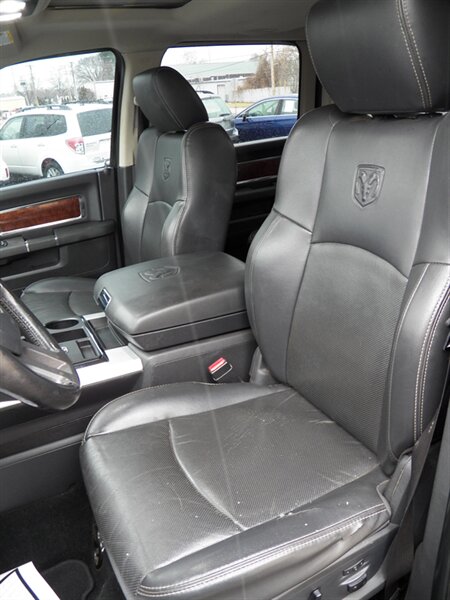 2011 RAM 1500 Laramie 4x4 — factory Laramie equipment includes premium leather-trimmed seating with heated front seats and power-adjustable front seats, wood-tone interior accents and chrome exterior trim, automatic climate control, remote keyless entry, power windows/locks/mirrors, steering-wheel audio controls and Uconnect AM/FM/CD audio with auxiliary input. Safety and convenience features include anti-lock brakes, electronic stability and traction control, multiple airbags, cruise control, fog lamps and alloy wheels, plus a factory 4x4 system. Asking price is below J.D. Power Book value. This truck has under 139,000 miles (averaging less than 9,000 miles per year) and is in excellent overall condition.