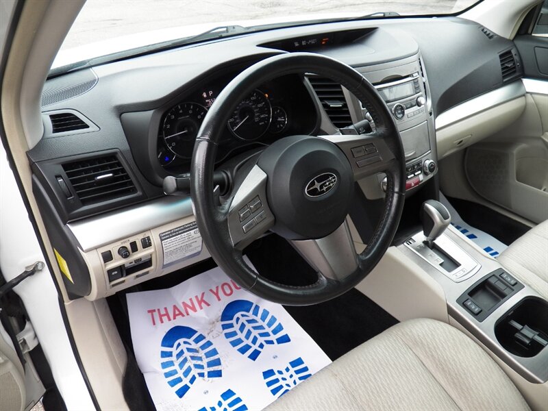 2011 Subaru Outback 2.5i Premium AWD with a 2.5L horizontally opposed 4-cylinder engine producing 170 hp and 170 lb-ft of torque. Factory equipment includes Subaru Symmetrical All-Wheel Drive, raised ride height and roof rails with integrated crossbars, power windows and locks, remote keyless entry, air conditioning, cruise control, tilt steering, 60/40 split-folding rear seats, cloth seating, and a 6-speaker audio system with CD player and auxiliary input; Premium trim adds features such as 17-inch alloy wheels, a power moonroof and heated front seats. Well-maintained with under 136,000 miles (averaging less than 9,000 miles/year), EPA-rated at 22 MPG city and 29 MPG highway, and in excellent overall condition.