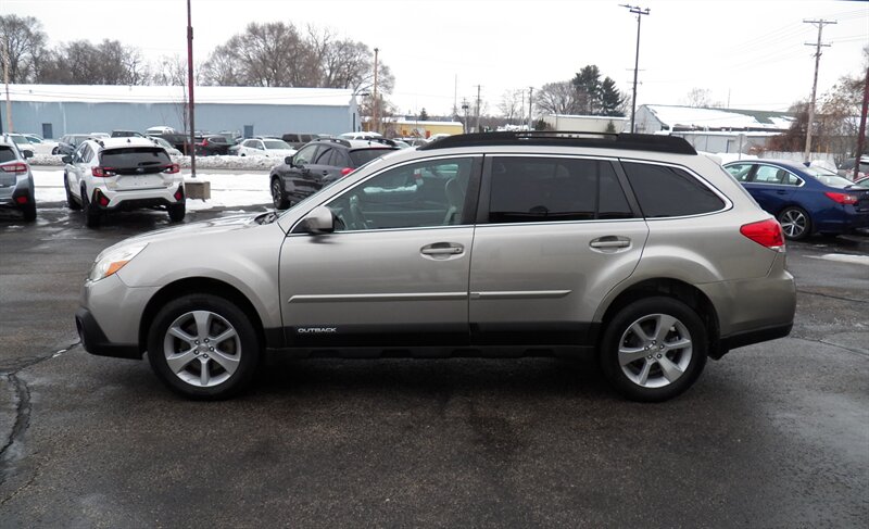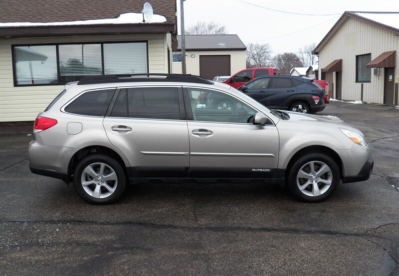 The 2014 Subaru Outback 3.6R Limited is a versatile and capable SUV, featuring a robust 3.6L H6 engine that delivers 256 horsepower and 247 ft-lbs of torque. This model is equipped with a host of factory default features designed for comfort and convenience, including leather upholstery, heated front seats, and a power-adjustable driver's seat. The infotainment system includes a 7-inch touchscreen display, Bluetooth connectivity, and a premium audio system for enhanced entertainment. Additionally, it comes with Subaru's EyeSight Driver Assist Technology, which includes adaptive cruise control and pre-collision braking for added safety. With a fuel efficiency of 17 MPG in the city and 25 MPG on the highway, this Outback balances performance with practicality. The vehicle is in excellent overall condition, making it a reliable choice for both daily commutes and weekend adventures.