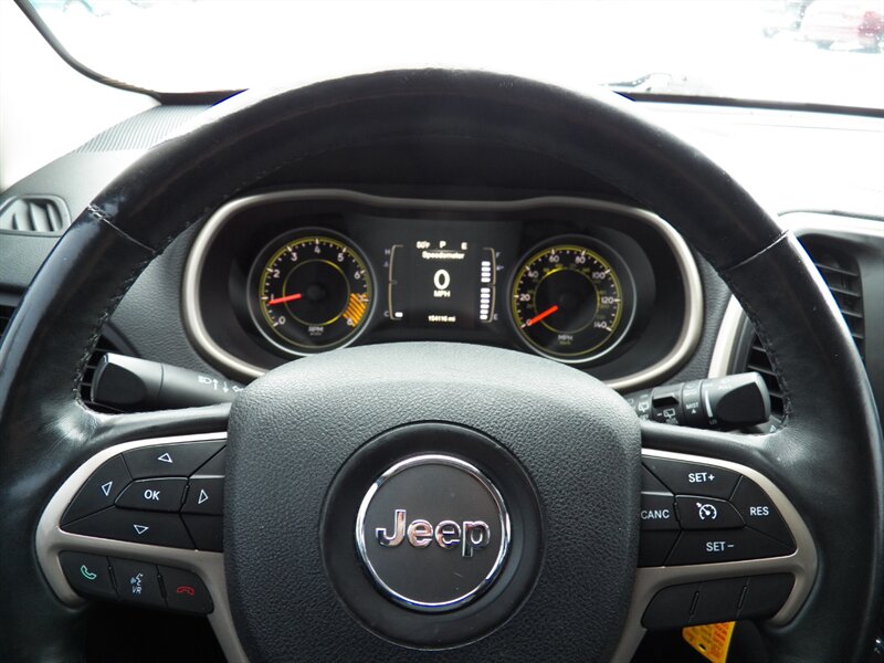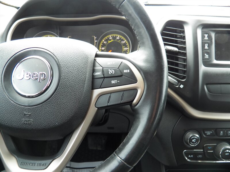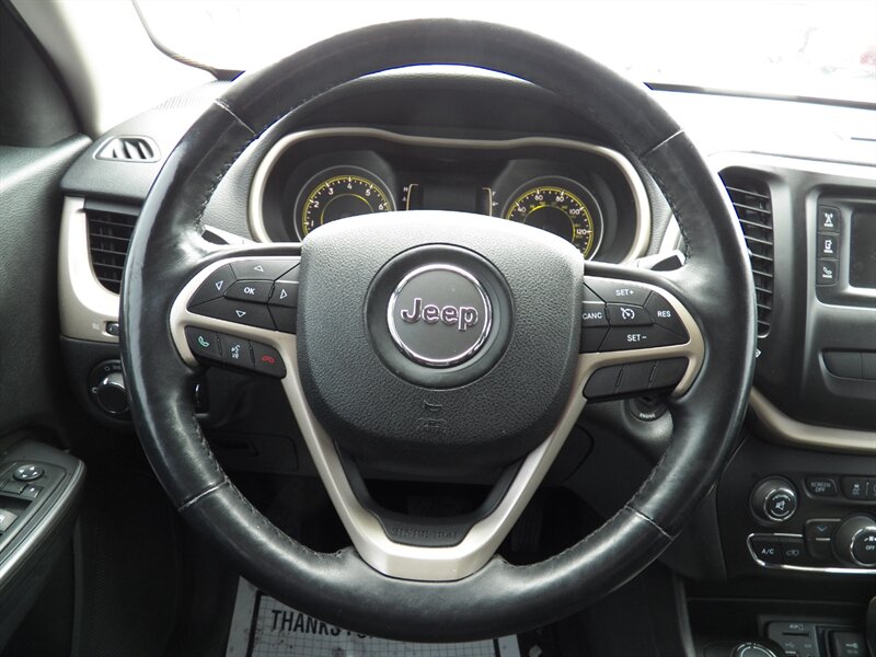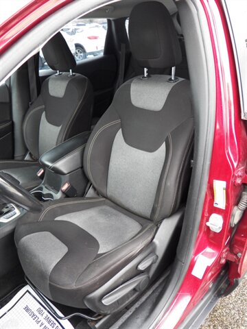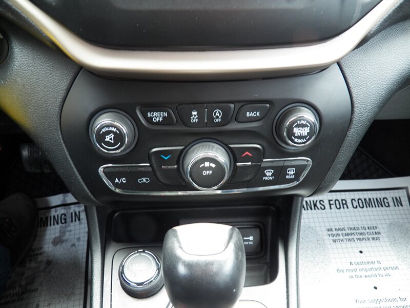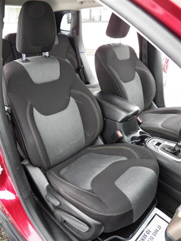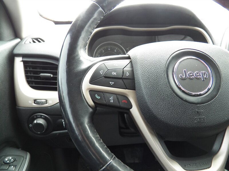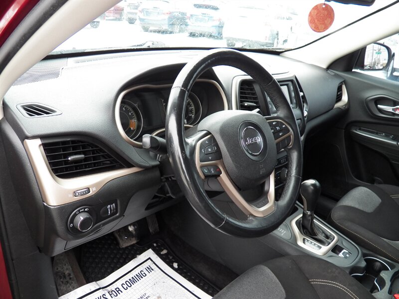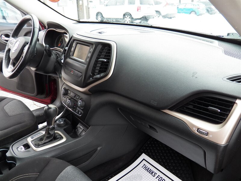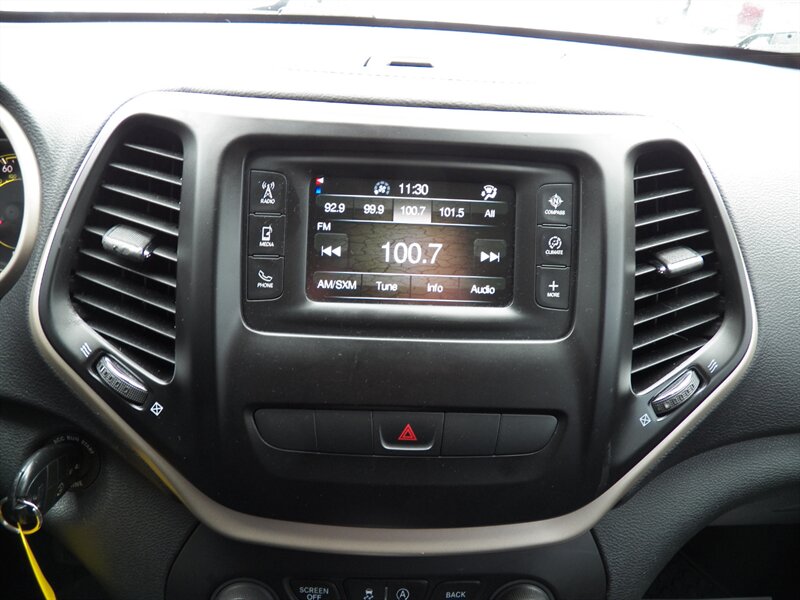 2015 Jeep Cherokee Sport with the 3.2L Pentastar V6 (paired to the nine-speed automatic) and front-wheel drive as factory standard. Factory safety and chassis equipment typically includes front, side and curtain airbags, anti-lock brakes (ABS), electronic stability and traction control, and a tire-pressure monitoring system. Standard interior features include cloth seating with a 60/40 split-folding rear bench, manual air conditioning, power windows and locks, remote keyless entry, cruise control, and a tilt/telescoping steering wheel with audio controls; the Sport commonly came with an AM/FM Uconnect audio system offering auxiliary/USB inputs and Bluetooth hands-free/streaming. Exterior features commonly include 17-inch wheels and halogen headlamps. This vehicle is in excellent overall condition.