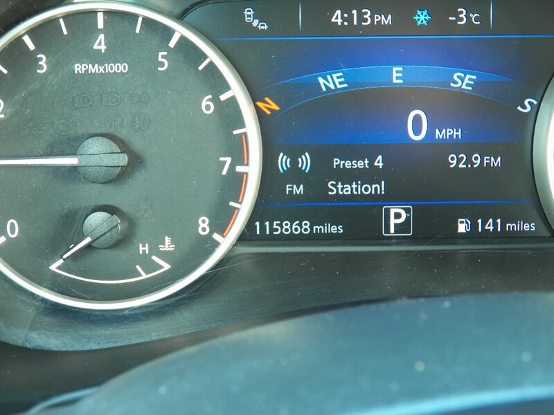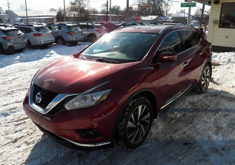 2015 Nissan Murano Platinum AWD with the 3.5L V6 (260 hp, 240 ft-lbs), paired with Nissan’s Xtronic CVT. Below 116,000 miles (averaging under 10,000 miles/year), EPA-rated at 21 MPG city and 28 MPG highway, and in excellent overall condition.
