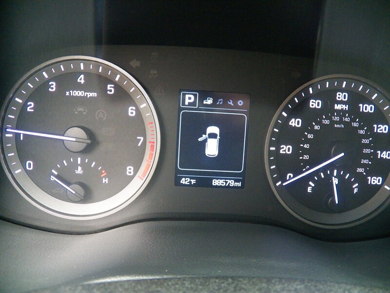 The 2017 Hyundai Tucson 2.0L SE offers a blend of comfort and practicality, featuring a spacious interior with seating for five. This model comes equipped with a 2.0L four-cylinder engine paired with a six-speed automatic transmission, delivering a smooth driving experience. Factory default features include a 7-inch touchscreen display with a rearview camera, Bluetooth connectivity for hands-free calling, and a six-speaker audio system. The Tucson also includes keyless entry, a power-adjustable driver's seat, and a spacious cargo area for added convenience. With below 89,000 miles, this vehicle averages less than 10,000 miles per year and is in excellent overall condition, making it a reliable choice for daily commuting or weekend adventures.
