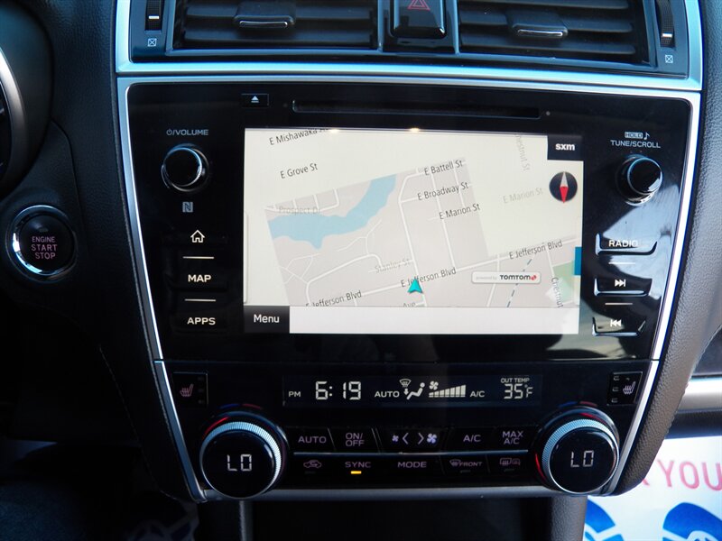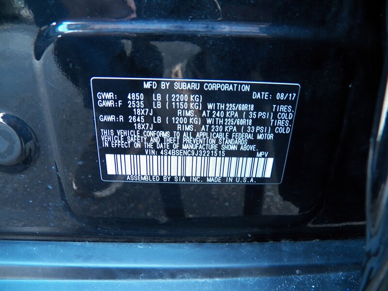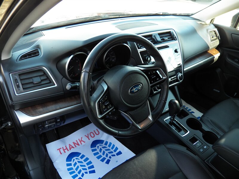 2018 Subaru Outback 3.6R Limited in excellent overall condition, powered by a 3.6L H6 producing 256 hp and 247 lb-ft of torque, EPA-rated at 20 MPG city and 27 MPG highway. Factory equipment includes Symmetrical All-Wheel Drive, 6-speed automatic transmission, leather-trimmed seats, heated front seats, power-adjustable driver and front passenger seats with memory, dual-zone automatic climate control, keyless access with push-button start and remote start, hands-free power rear gate, roof rails with integrated crossbars, 18-inch alloy wheels and fog lights. Interior tech and convenience features include Subaru STARLINK multimedia with touchscreen, Bluetooth phone and audio, USB ports, steering-wheel audio controls, cruise control and a rearview camera. Standard safety and chassis systems include ABS, traction control, Vehicle Dynamics Control, multiple airbags and tire pressure monitoring.