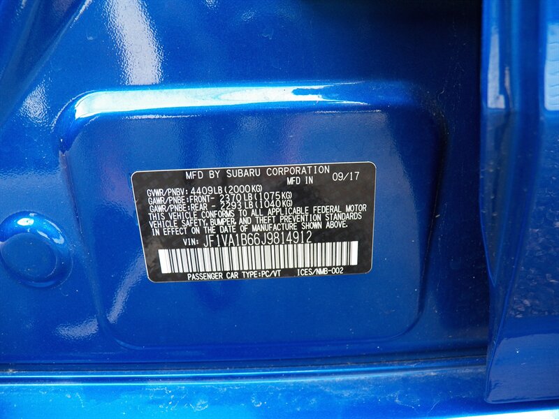 2018 Subaru WRX Premium AWD in excellent overall condition with under 86,000 miles (averaging less than 10,000 miles per year). Factory equipment includes the 2.0L turbocharged H4 Boxer engine producing 268 hp and 258 lb-ft, paired with the standard 6-speed manual (CVT was optional), Subaru Symmetrical All-Wheel Drive, sport-tuned suspension, 17-inch alloy wheels, rear spoiler and fog lights; interior features include heated front sport seats, automatic climate control, a 6.5-inch STARLINK infotainment system with Bluetooth/USB/Aux and a backup camera, power windows/locks, keyless entry and cruise control. Safety and convenience systems come factory-standard with ABS, traction and stability control and multiple airbags; EPA fuel economy is 21 MPG city and 27 MPG highway.