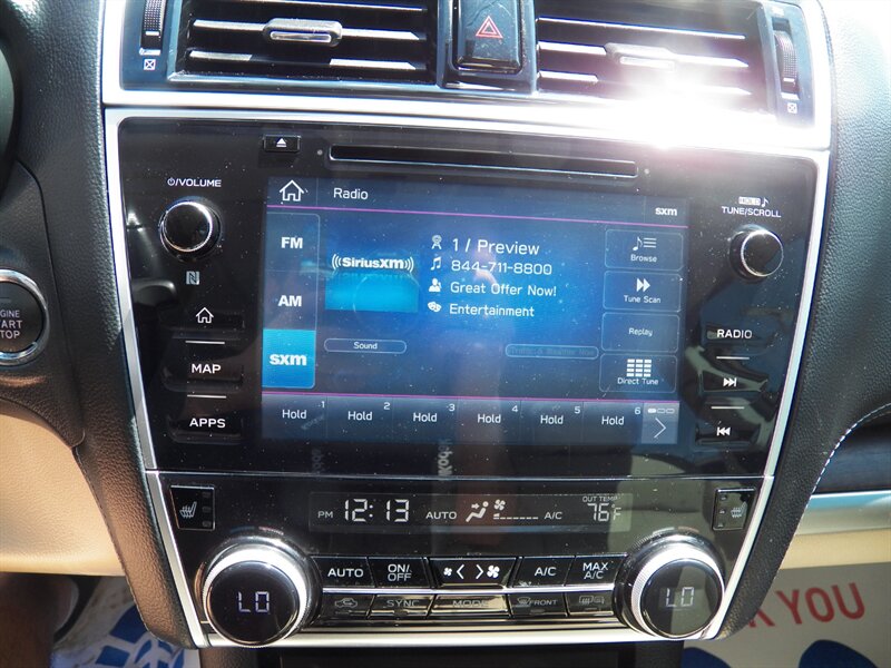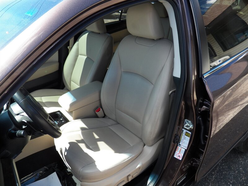 Factory-installed features include leather-trimmed seating with heated front seats, power-adjustable driver’s seat, dual-zone automatic climate control, an infotainment touchscreen with Bluetooth and USB connectivity plus smartphone integration, rearview camera, blind-spot detection with rear cross-traffic alert, keyless entry with push-button start, roof rails with integrated crossbars, alloy wheels, fog lights, and Subaru’s full-time Symmetrical All-Wheel Drive with stability and traction control.