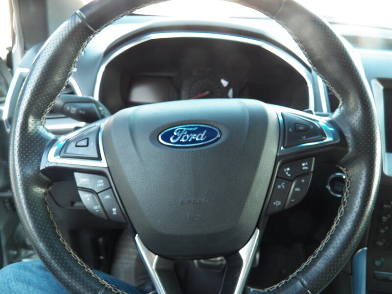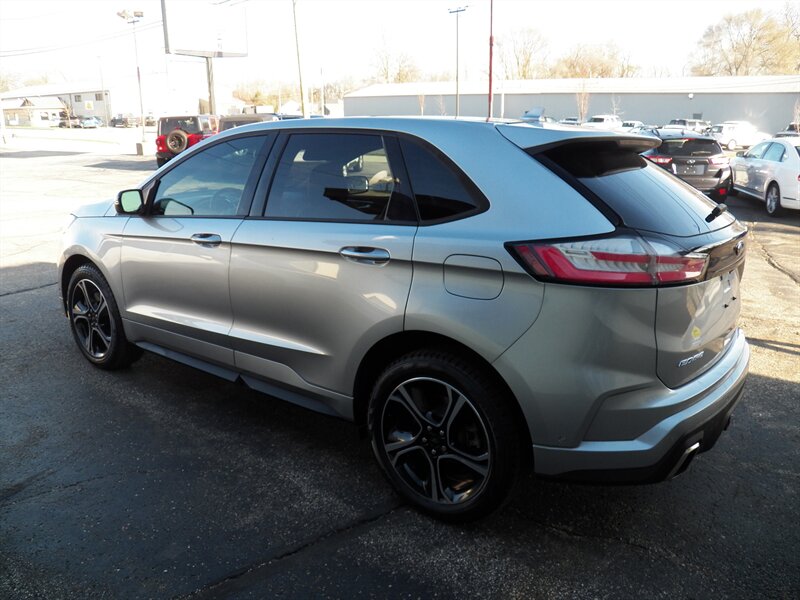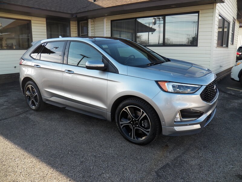 2020 Ford Edge ST AWD powered by the EcoBoost 2.7L twin-turbo V6 (335 hp / 380 lb-ft), EPA-rated at 19 MPG city and 26 MPG highway, and in excellent overall condition. Factory-equipped as an ST performance model with all-wheel drive, sport-tuned suspension, distinctive ST exterior and interior styling, dual exhaust and upgraded brakes. Comfort and convenience features include leather-trimmed sport seats with power adjustments, dual-zone automatic climate control, keyless entry/ignition, and generous cargo versatility. The factory infotainment and safety package includes SYNC 3 touchscreen with Apple CarPlay/Android Auto, Bluetooth and USB connectivity, rearview camera and a suite of driver-assist technologies such as blind-spot monitoring, rear cross-traffic alert and automatic emergency braking.