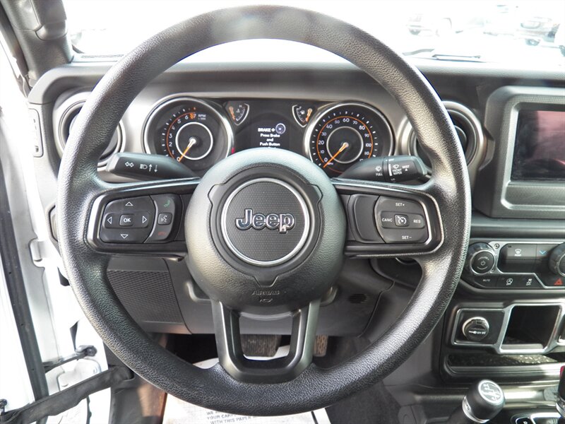 2022 Jeep Wrangler Sport S 4x4 powered by a 3.6L V6 (285 hp, 260 lb-ft). Factory equipment includes the part-time 4x4 drivetrain, removable top and doors, cloth seating, power windows and locks, air conditioning, cruise control, tilt/telescoping steering wheel, 17-inch wheels, Uconnect infotainment with touchscreen and smartphone integration (Apple CarPlay/Android Auto), rearview camera and standard safety systems. Fuel economy is 17 MPG city and 25 MPG highway. Vehicle is in excellent overall condition and is priced below J.D. Power Book value.